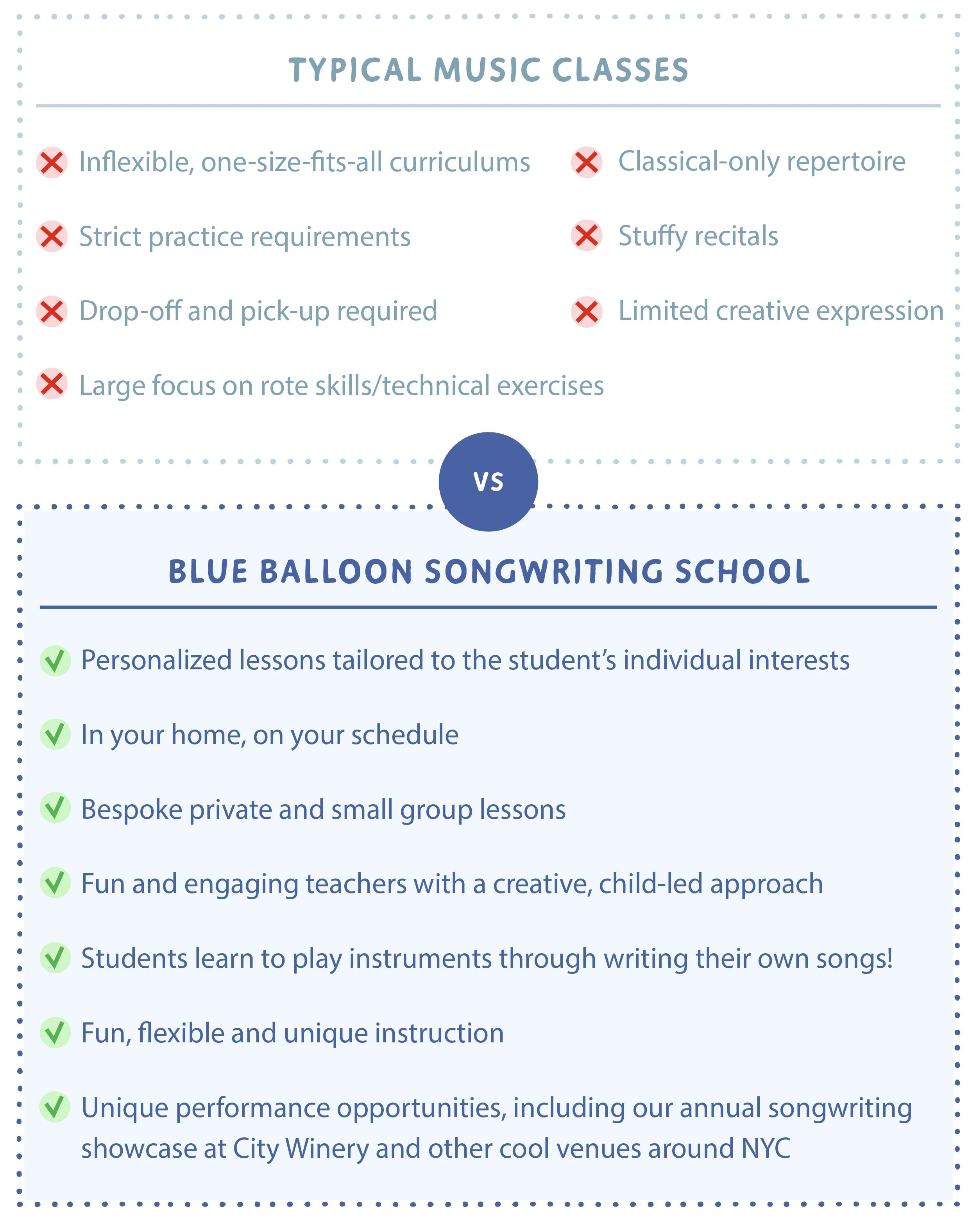 Blue Balloon is known for having a unique approach to instrument instruction through songwriting and is widely recognized as one of the most sought after music programs in the country!